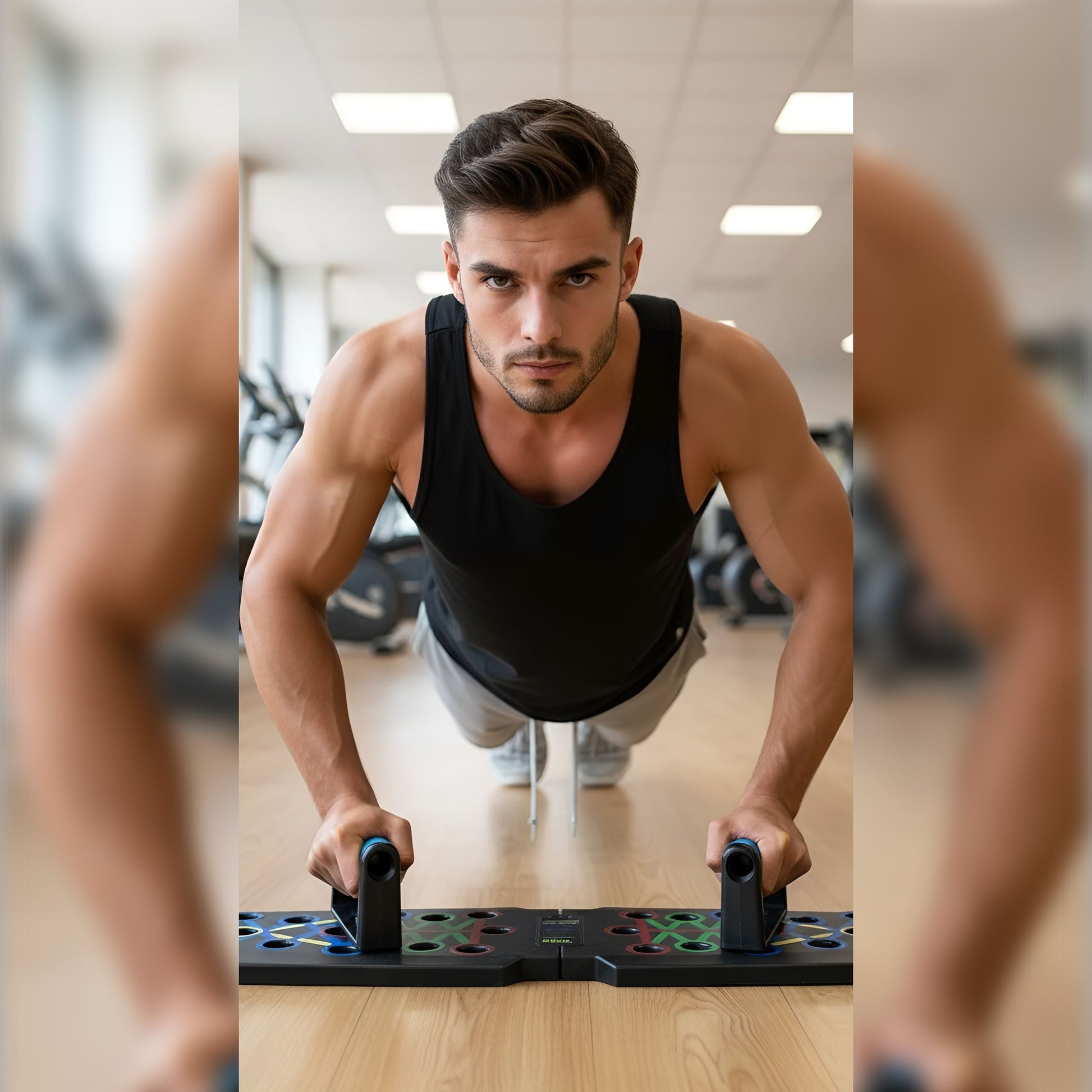 Les positions d'appui clairement marquées sur la planche vous guident pour cibler précisément chaque groupe musculaire — pectoraux, triceps, épaules et dos. Optimisez votre temps d'entraînement avec un équipement conçu pour maximiser l'efficacité de chaque mouvement.